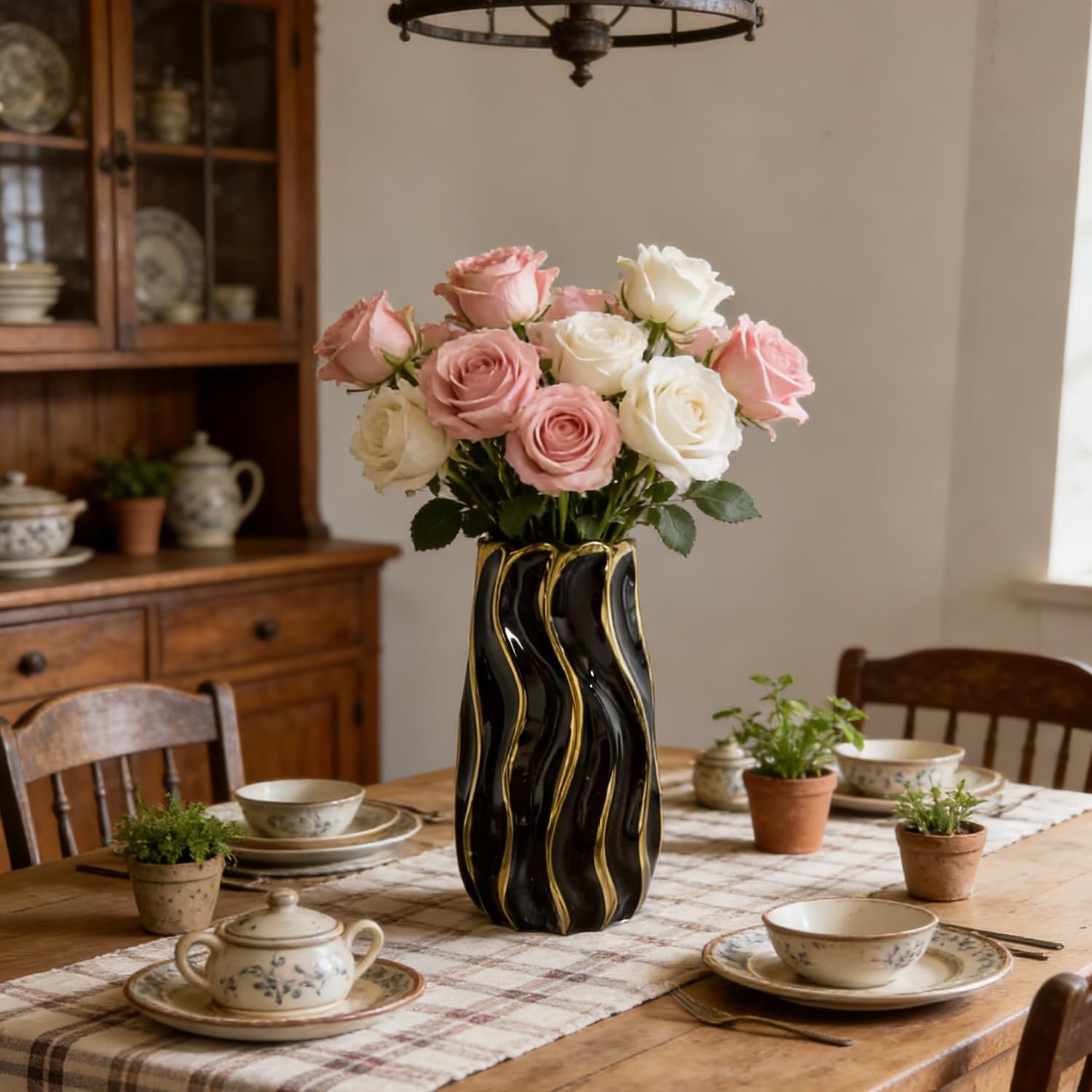 High quality ceramics: This ceramic vase is made of 100% colored clay and fired at high temperatures, making it sturdy and durable; Perfect for your living room, dining room, bathroom, desktop, fireplace rack, or workspace.