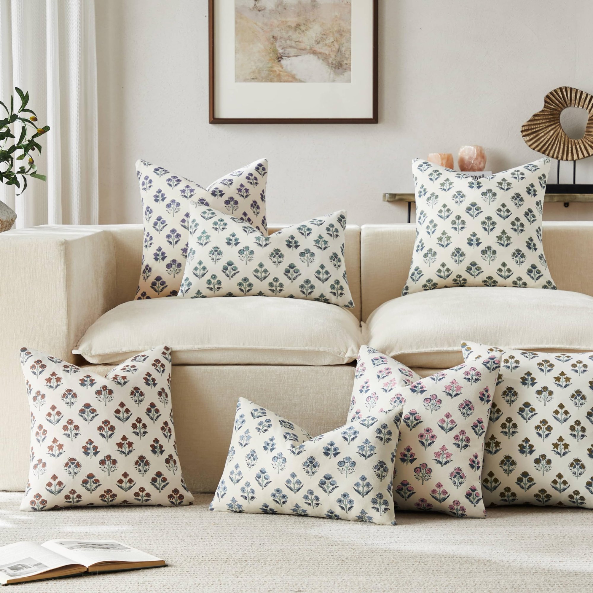 Cotton Floral Pillow Covers Set of 2 – Double-Sided Boho Decorative Throw Pillow Cases 12x20 in